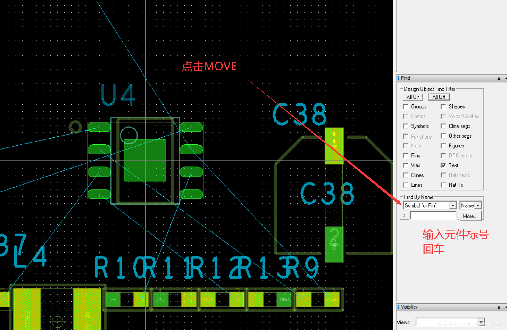 MOVE命令开启,之后在Find By name命令框输入要摆放的元器件