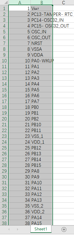 这里我以STM32F103C8T6(LQFP48)为例,演示如何借助Excel创建: