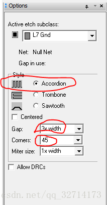 这个是走蛇形线。Options如下设置。(差分最好走5W线宽)