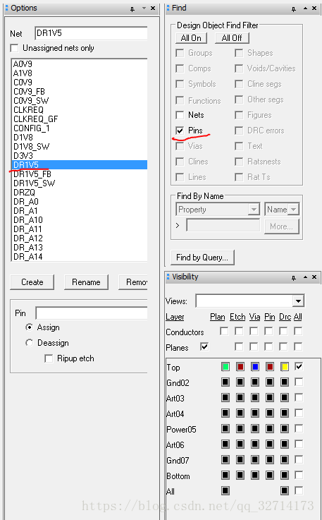 Option处选择网络,然后find处选择Pins,之后点击要修改网络的Pin即可将原来的网络修改为所选择的网络。