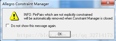 设置好pin pair之后按ok会出现这个警告,意思是设置完pin pair之后必须马上设置规则,否则过一段时间,设置的pin pair会消失,得重新设置。