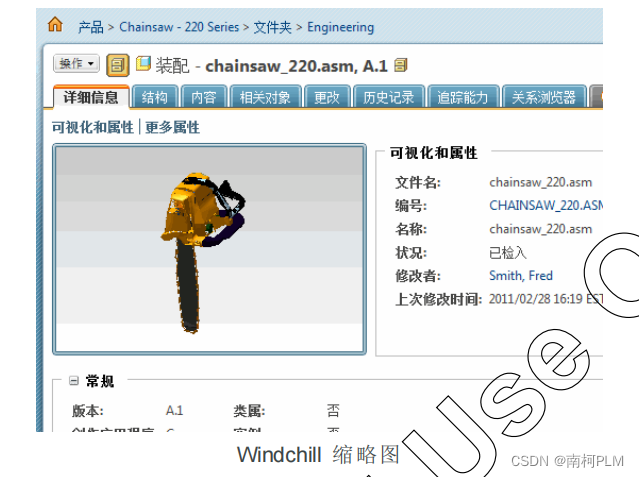 的部件信息页面和列表中。选择缩略图可启动 Creo View,这是一款数据查看和可视化工具,