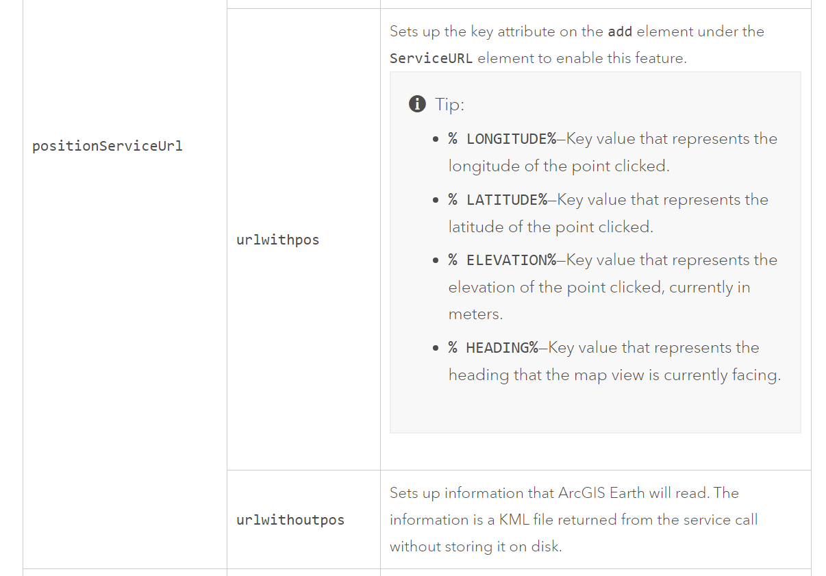 C:\Users\username\AppData\Local\Programs\ArcGIS\Earth\bin. XX位置有一个config.xml文件,这是earth的配置文件。详细说明见文档。里面有一个positionServiceUrl, 详细说明如下: