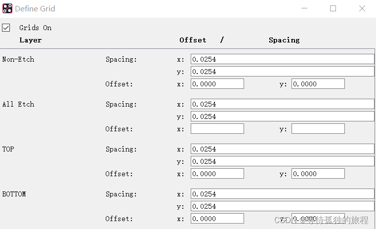 打开网格方法一:Setup->Design patrameters->Display中勾选Grids on->Setup grids中设置参数方法二:Setup->Grids设置如下图。
