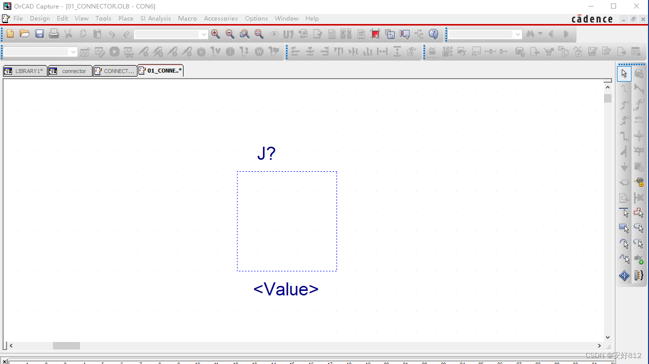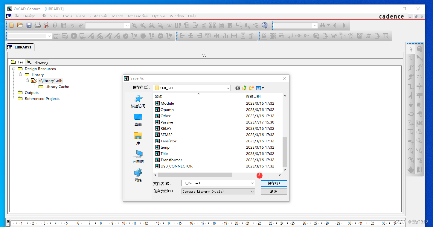 2、 将“libraryl .olb” 另存到自己的文件夹,取名为 “01_Connector”(可以取其他名,建议按照类别,方便后期使用),再来新建器件,如下图所示。