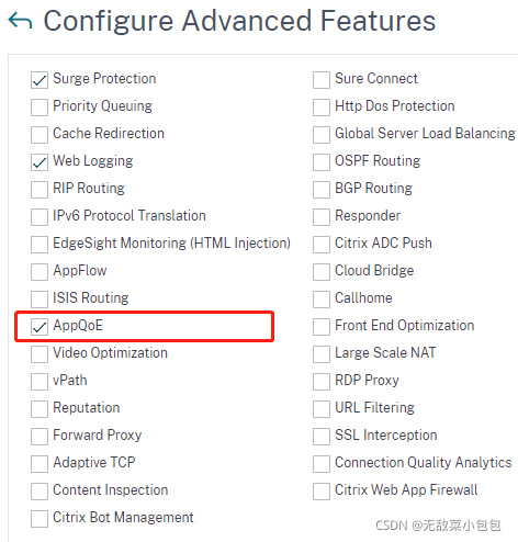 3.在配置高级功能对话框中,选中AppQoE复选框