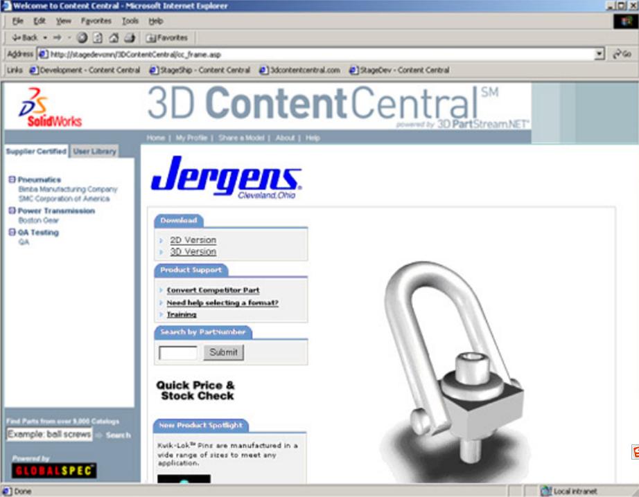 有了三维资源中心,零件制造商们就能够为他们的部件创建与SolidWorks兼容的数据模型,并把他们发布在一个由SolidWorks管理的网站上。设计工程们则可以下载这些数据,将这些零件信息包含在他们设计的产品之内。在2005年中期,SolidWorks的用户们每个月下载了接近10万个零件模型。