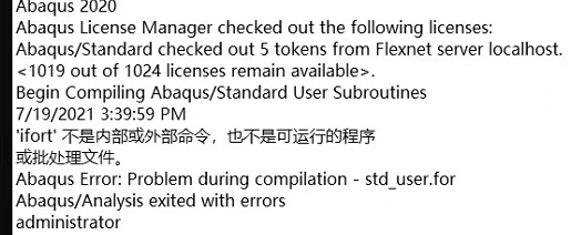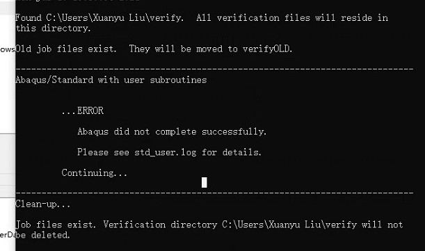 同样,运行 abaqus verify -user_std 提示也是错误,如下图