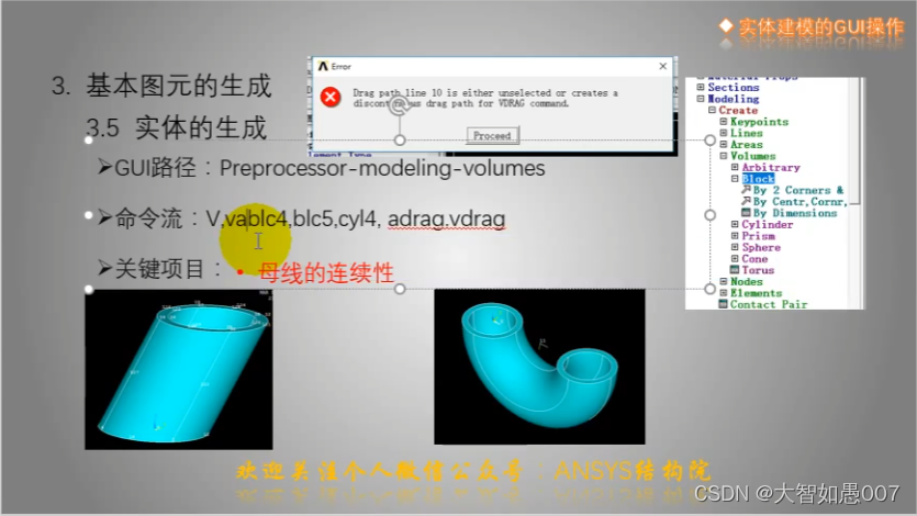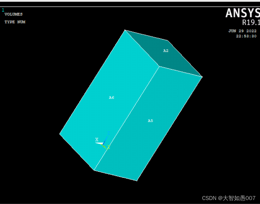 finish/clear/prep7!建立点k,1k,2,500k,3,500,500k,4,0,500!复制平移点kgen,2,all,,,,,1000 ! all选中所有的,KGEN,ITIME,NP1,NP2,NINC,DX,DY,DZ,KINC,NOELEM,IMOVE! 建立体v,7,6,5,8,3,2,1,4 !建立体的方向 旋转方向要一致或者先建立面在建立体