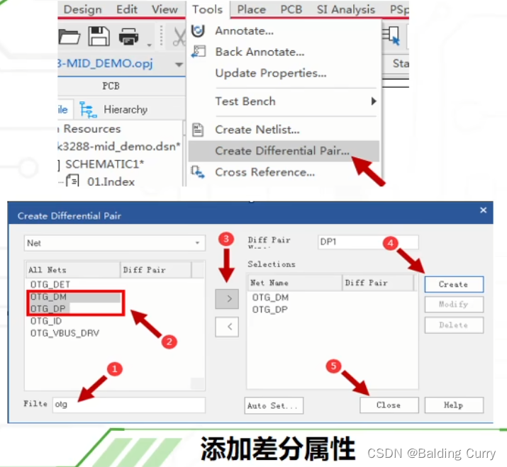 创建差分对:单击PAGE——Tools——Create Differential Pair