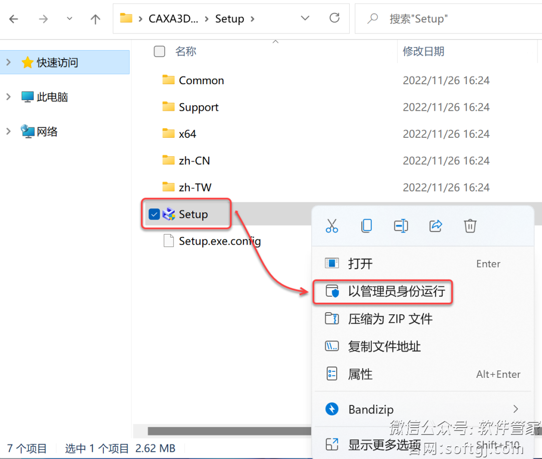 3.鼠标右击【Setup】选择【以管理员身份运行】。
