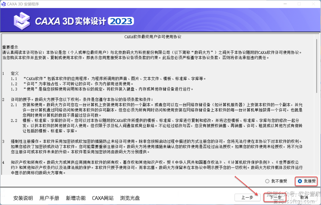 5.点击【我接受】,点击【下一步】。