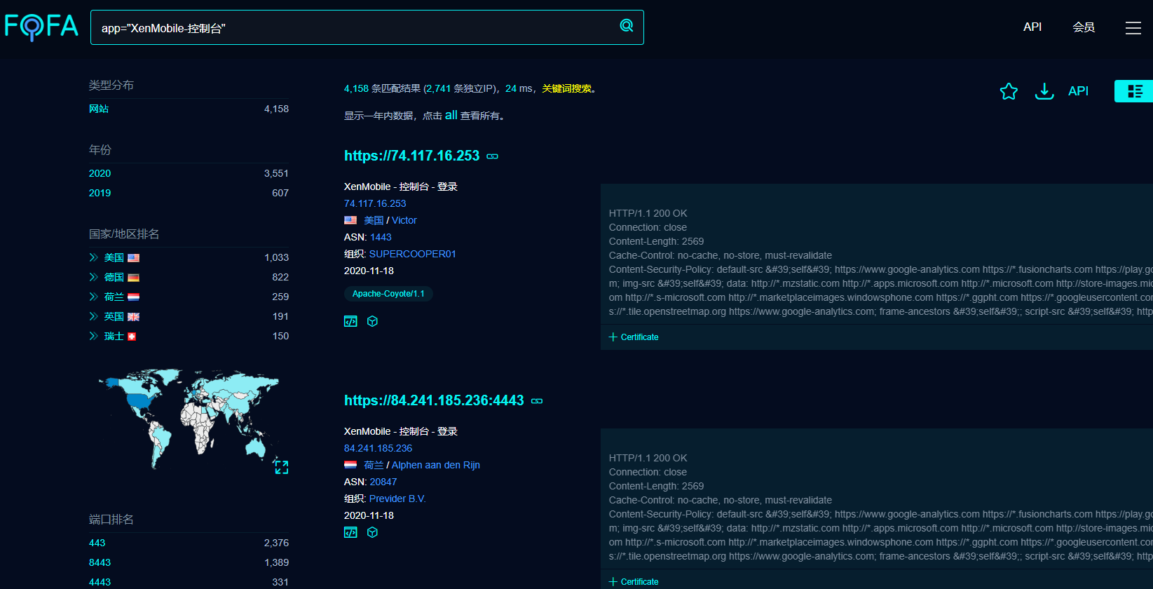 XenMobile是Citrix开发的企业移动性管理软件,该产品允许企业管理员工的移动设备和移动应用程序,该软件的目的是通过允许员工安全地在企业拥有的和个人移动设备及应用程序上工作来提高生产率。CVE-2020-8209,路径遍历漏洞。此漏洞允许未经授权的用户读取任意文件,包括包含密码的 配置文件 。(该软件国外居多,国内基本很少)