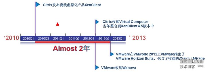 桌面虚拟化发布时间:Citrix在2000年,VMware在2008年;