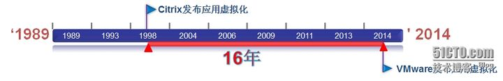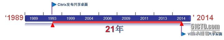 共享桌面虚拟化(应用虚拟化的一种)发布时间:Citrix在1995年,VMware在2014年;