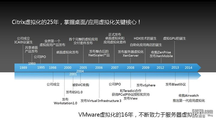 公司成立时间:Citrix在1989年,VMware在1998年;