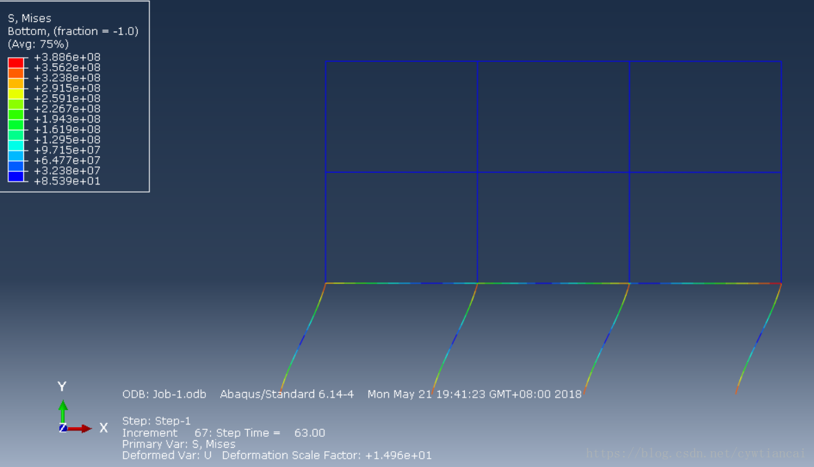 from abaqus import *from abaqusConstants import *session.Viewport(name='Viewport: 1', origin=(0.0, 0.0), width=210.744781494141, height=126.414352416992)session.viewports['Viewport: 1'].makeCurrent()session.viewports['Viewport: 1'].maximize()from caeModules import *from driverUtils import executeOnCaeStartupexecuteOnCaeStartup()session.viewports['Viewport: 1'].partDisplay.geometryOptions.setValues( referenceRepresentation=ON)Mdb()#: A new model database has been created.#: The model "Model-1" has been created.session.viewports['Viewport: 1'].setValues(displayedObject=None)s = mdb.models['Model-1'].ConstrainedSketch(name='__profile__', sheetSize=200.0)g, v, d, c = s.geometry, s.vertices, s.dimensions, s.constraintss.setPrimaryObject(option=STANDALONE)s.unsetPrimaryObject()del mdb.models['Model-1'].sketches['__profile__']s1 = mdb.models['Model-1'].ConstrainedSketch(name='__profile__', sheetSize=20.0)g, v, d, c = s1.geometry, s1.vertices, s1.dimensions, s1.constraintss1.setPrimaryObject(option=STANDALONE)s1.Line(point1=(-6.75, 0.0), point2=(-6.75, 3.3))s1.VerticalConstraint(entity=g[2], addUndoState=False)s1.Line(point1=(-6.75, 3.3), point2=(-6.75, 6.6))s1.VerticalConstraint(entity=g[3], addUndoState=False)s1.ParallelConstraint(entity1=g[2], entity2=g[3], addUndoState=False)s1.Line(point1=(-6.75, 6.6), point2=(-6.75, 9.9))s1.VerticalConstraint(entity=g[4], addUndoState=False)s1.ParallelConstraint(entity1=g[3], entity2=g[4], addUndoState=False)session.viewports['Viewport: 1'].view.setValues(nearPlane=11.3139, farPlane=26.3985, width=59.7579, height=27.7573, cameraPosition=(14.0678, -5.39243, 18.8562), cameraTarget=(14.0678, -5.39243, 0))s1.Line(point1=(-2.25, 0.0), point2=(-2.25, 3.3))s1.VerticalConstraint(entity=g[5], addUndoState=False)s1.Line(point1=(-2.25, 3.3), point2=(-2.25, 6.6))s1.VerticalConstraint(entity=g[6], addUndoState=False)s1.ParallelConstraint(entity1=g[5], entity2=g[6], addUndoState=False)s1.Line(point1=(-2.25, 6.6), point2=(-2.25, 9.9))s1.VerticalConstraint(entity=g[7], addUndoState=False)s1.ParallelConstraint(entity1=g[6], entity2=g[7], addUndoState=False)s1.Line(point1=(2.25, 0.0), point2=(2.25, 3.3))s1.VerticalConstraint(entity=g[8], addUndoState=False)s1.Line(point1=(2.25, 3.3), point2=(2.25, 6.6))s1.VerticalConstraint(entity=g[9], addUndoState=False)s1.ParallelConstraint(entity1=g[8], entity2=g[9], addUndoState=False)s1.Line(point1=(2.25, 6.6), point2=(2.25, 9.9))s1.VerticalConstraint(entity=g[10], addUndoState=False)s1.ParallelConstraint(entity1=g[9], entity2=g[10], addUndoState=False)s1.Line(point1=(6.75, 0.0), point2=(6.75, 3.3))s1.VerticalConstraint(entity=g[11], addUndoState=False)s1.Line(point1=(6.75, 3.3), point2=(6.75, 6.6))s1.VerticalConstraint(entity=g[12], addUndoState=False)s1.ParallelConstraint(entity1=g[11], entity2=g[12], addUndoState=False)s1.Line(point1=(6.75, 6.6), point2=(6.75, 9.9))s1.VerticalConstraint(entity=g[13], addUndoState=False)s1.ParallelConstraint(entity1=g[12], entity2=g[13], addUndoState=False)session.viewports['Viewport: 1'].view.fitView()s1.Line(point1=(-6.75, 9.9), point2=(6.75, 9.9))s1.HorizontalConstraint(entity=g[14], addUndoState=False)s1.PerpendicularConstraint(entity1=g[4], entity2=g[14], addUndoState=False)s1.delete(objectList=(g[14], ))s1.Line(point1=(-6.75, 9.9), point2=(-2.25, 9.9))s1.HorizontalConstraint(entity=g[15], addUndoState=False)s1.PerpendicularConstraint(entity1=g[4], entity2=g[15], addUndoState=False)#: Warning: Coincident point selected.s1.Line(point1=(-2.25, 9.9), point2=(2.25, 9.9))s1.HorizontalConstraint(entity=g[16], addUndoState=False)s1.ParallelConstraint(entity1=g[15], entity2=g[16], addUndoState=False)#: Warning: Coincident point selected.s1.Line(point1=(2.25, 9.9), point2=(6.75, 9.9))s1.HorizontalConstraint(entity=g[17], addUndoState=False)s1.ParallelConstraint(entity1=g[16], entity2=g[17], addUndoState=False)s1.Line(point1=(-6.75, 6.6), point2=(-2.25, 6.6))s1.HorizontalConstraint(entity=g[18], addUndoState=False)s1.PerpendicularConstraint(entity1=g[3], entity2=g[18], addUndoState=False)#: Warning: Coincident point selected.s1.Line(point1=(-2.25, 6.6), point2=(2.25, 6.6))s1.HorizontalConstraint(entity=g[19], addUndoState=False)s1.ParallelConstraint(entity1=g[18], entity2=g[19], addUndoState=False)#: Warning: Coincident point selected.s1.Line(point1=(2.25, 6.6), point2=(6.75, 6.6))s1.HorizontalConstraint(entity=g[20], addUndoState=False)s1.ParallelConstraint(entity1=g[19], entity2=g[20], addUndoState=False)s1.Line(point1=(-6.75, 3.3), point2=(-2.25, 3.3))s1.HorizontalConstraint(entity=g[21], addUndoState=False)s1.PerpendicularConstraint(entity1=g[2], entity2=g[21], addUndoState=False)#: Warning: Coincident point selected.s1.Line(point1=(-2.25, 3.3), point2=(6.75, 3.3))s1.HorizontalConstraint(entity=g[22], addUndoState=False)s1.ParallelConstraint(entity1=g[21], entity2=g[22], addUndoState=False)session.viewports['Viewport: 1'].view.setValues(nearPlane=29.6333, farPlane=37.3306, width=30.4932, height=14.164, cameraPosition=(0.674583, 5.49897, 33.4819), cameraTarget=(0.674583, 5.49897, 0))p = mdb.models['Model-1'].Part(name='Part-1', dimensionality=TWO_D_PLANAR, type=DEFORMABLE_BODY)p = mdb.models['Model-1'].parts['Part-1']p.BaseWire(sketch=s1)s1.unsetPrimaryObject()p = mdb.models['Model-1'].parts['Part-1']session.viewports['Viewport: 1'].setValues(displayedObject=p)del mdb.models['Model-1'].sketches['__profile__']session.viewports['Viewport: 1'].partDisplay.setValues(sectionAssignments=ON, engineeringFeatures=ON)session.viewports['Viewport: 1'].partDisplay.geometryOptions.setValues( referenceRepresentation=OFF)mdb.models['Model-1'].Material(name='Material-1')mdb.models['Model-1'].materials['Material-1'].Elastic(table=((210000000000.0, 0.3), ))mdb.models['Model-1'].Material(name='Material-2')mdb.models['Model-1'].materials['Material-2'].Plastic(table=((345000000.0, 0.0), ))del mdb.models['Model-1'].materials['Material-2']mdb.models['Model-1'].materials['Material-1'].elastic.setValues(table=(( 2.1e+15, 0.3),