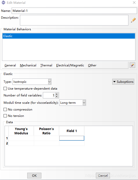 PS: 材料的性质,如各向同性,各向异性等,不同的性质对应不同的data设置,具体可参考ABAQUA岩土P69和ELASTIC,关键是了解各个量的含义。