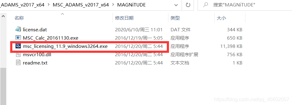 图一:点击红色方框内文件后开始安装,红色方框文件上面的文件是生成许可证的