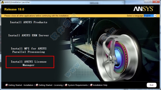 12、回到开始向导界面,选择“Install ANSYS License Manager”