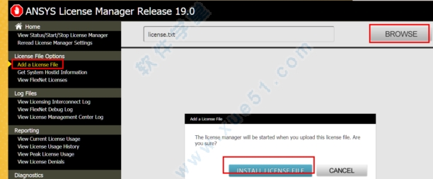 21、在选择"Add A License File" > Browse选择Crack with server license破解文件下的license.txt,点击install ....