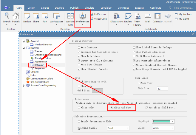 基线和差异:基线是某个时间建模的快照,EA支持在同一文件中保存多个基线,可通过compare(diff)工具发现各个基线版本的差异;