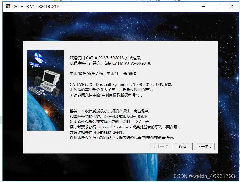 运行CATIA2018主程序 setup .exe时,出现 CATIA 安装的欢迎界面