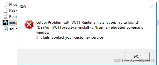 运行CATIA2018主 程序 setup.exe时,报错setup:Problem with VC11 Runtime installation.Try to launch "DSYAdmVC11preq. exe -install -v" from an elevated command window.