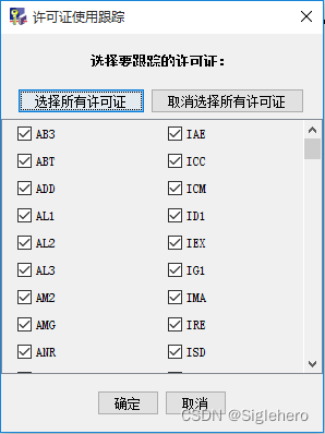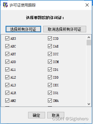 再次打开图7所示的《服务器配置》窗口,单击“许可证使用跟踪...”按钮,在弹出的窗口中“选择所有许可证”(图10)并“确定”,返回图7的《服务器配置窗口》后单击“应用”。在单击“确定”返回主界面后,确认创建的服务器信息栏中最左侧一栏的图标变成如图11所示。