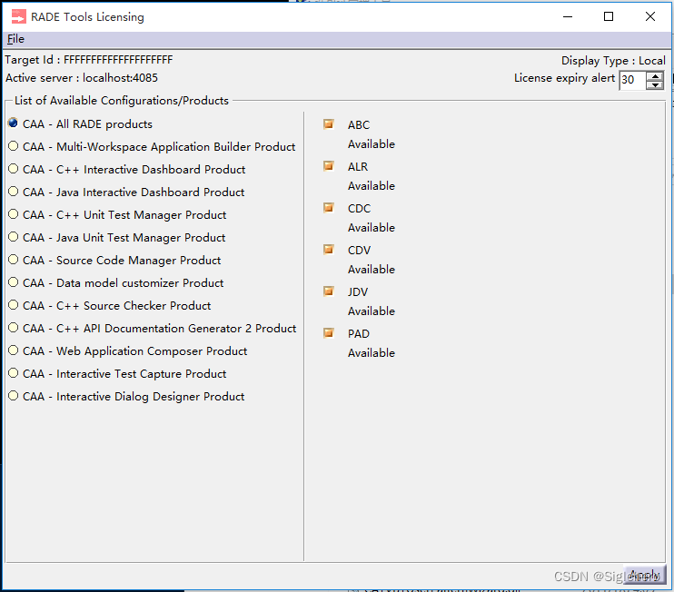 》文件并打开,将其中所有的许可证都勾选上并”Apply“(图21)。至此,RADE的破解全部完成。