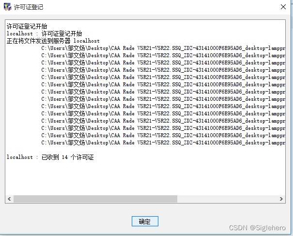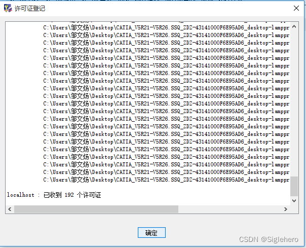 在许可证管理工具界面(图4)中,展开界面上方的“许可证”菜单栏 → 单击“登记” → 找到上一步中生成的许可证文件.licz并打开。在随后弹出的界面中末行显示“已收到192个许可证”则表示这一步成功(图9)。