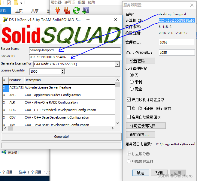 - 若你之前安装完DSLS_SSQ破解软件却无法打开界面,是按照视频链接Win10/Win11安装CATIA V5 R21 64位 教程哔哩哔哩bilibili完成的破解,则还是沿用视频中的方式来破解RADE。在整个破解过程中,除了在使用 《DSLS.LicGen.v1.5.SSQ.exe