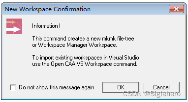 单击下拉框中的“New CAA V5 Workspace...”选项,若弹出了如图33所示的提示窗口,而非许可证警告窗口,则表明RADE的破解也没有问题。