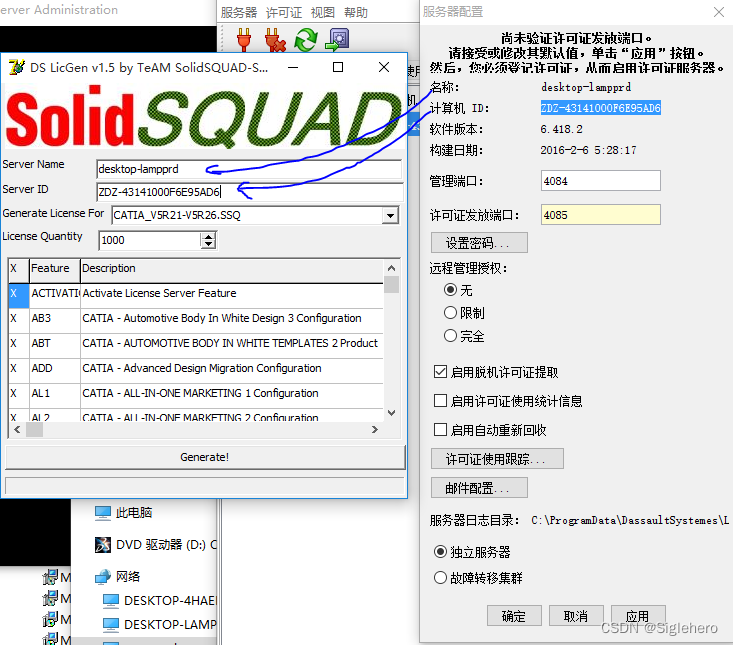 打开破解文件夹中的许可证生成工具 《DSLS.LicGen.v1.5.SSQ.exe