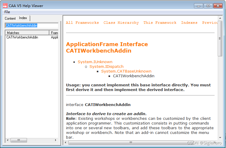 CATIA CAA开发包中自带两个对于开发者来说非常重要的辅助工具,一个就是上文中提到的CAA百科全书;另一个是查看各种对象和函数功能的检索工具《CNextHelpViewer
