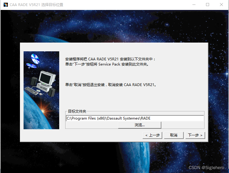 安装程序一般会默认将安装路径设置成CATIA的根目录,笔者在这里建议将安装路径修改成与CATIA根目录平行的文件夹,并将文件夹命名成《RADE》,方便与CATIA本体进行区分(图13)。安装路径设置好后,单击“下一步”。