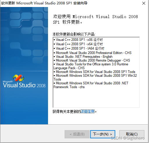 打开名字中带有"VS2008SP1"的安装包文件,在笔者提供的安装程序中,再打开《vs90sp1》文件夹,双击运行其中的安装程序《SPInstaller.exe》,在打开的界面中(图27)一路“下一步”,直至安装完成。若你是第一次安装该SP1补丁,此安装过程可能会比较长,还请耐心等待。