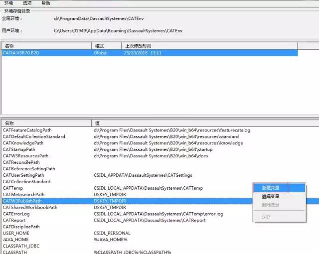 1、打开环境文件的保存文件:CATIA.V5R20.B20.txt