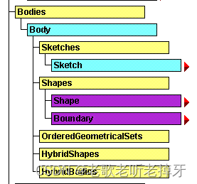 在 CATIA 里,诸如文件,窗口,视图,视角,零件,草图,凸台特征,乃至直线曲线,这些以对象的形式存在。这种对象在树状图中会用蓝色表示。