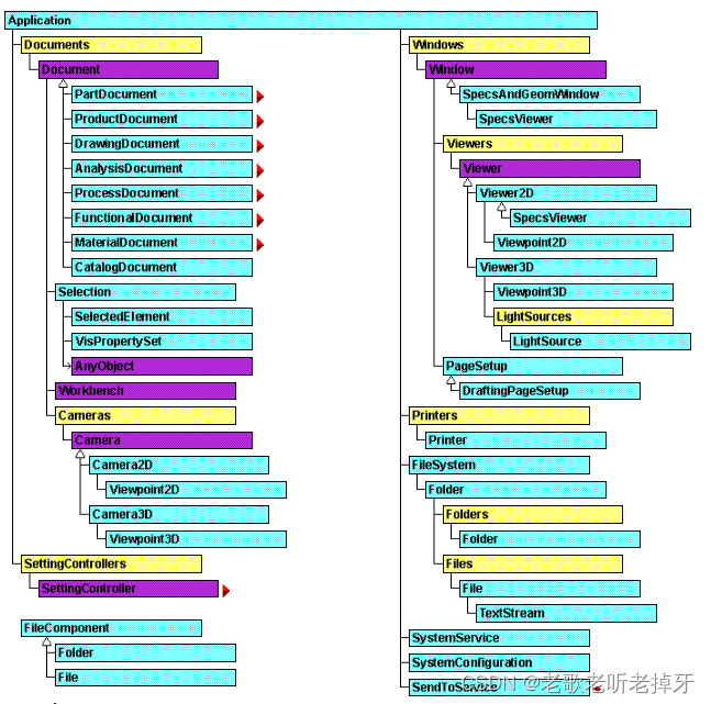 CATIA 软件中有一套逻辑与关系都十分严谨的 自动化 对象,它们从CATIA(Application)向下分支。每个自动化对象(Automation Object,以下简称Object)都有各自的属性与方法。我们通过程序语言调用这些 Object 的属性与方法,便可控制软件进行部分操作的自动进行。