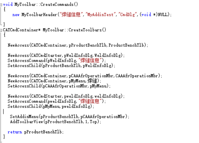 (5)、修改程序代码,添加CreateCommands和CreateToolbars函数