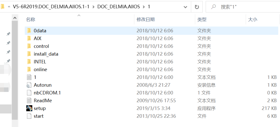 1、解压V5-6R2019.DOC_DELMIA.AllOS.1-1的压缩包,如图所示,