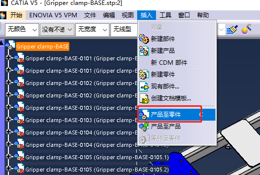 或者在状态栏【插入】菜单中,直接选择【产品至零件】。