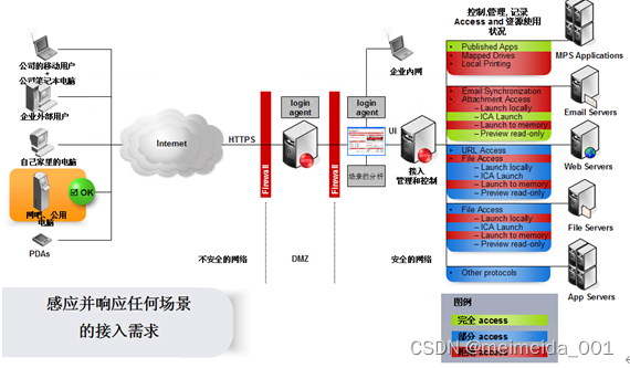 当Citrix Access Gateway Enterprise监测到该用户访问从信任网络发起(内部网络)后,该用户可以接入的企业资源及可以进行的对资源的操作权限相对较大,这是符合常理的。