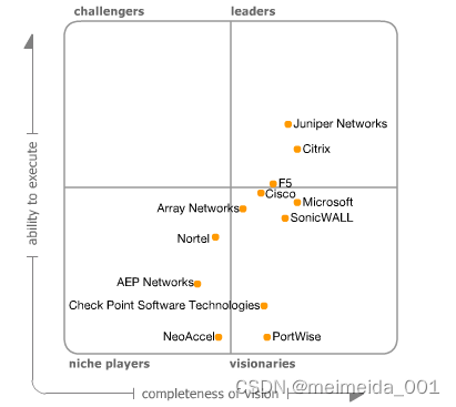 Citrix Access Gateway企业版产品近年来多次在权威机构的评测中得到好评,本章选取Gartner Group(全球最具权威的IT研究与顾问咨询公司)对SSL 市场的评测,Citrix Access Gateway企业版已经在该评测中连续多年评为业界领导者。