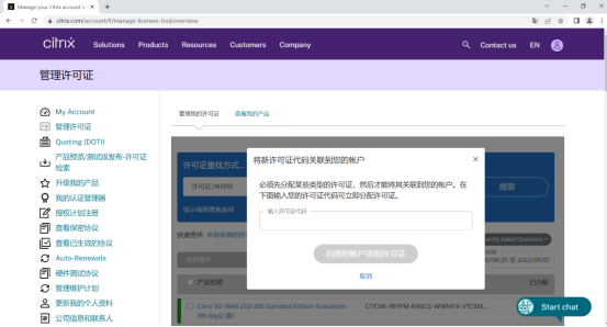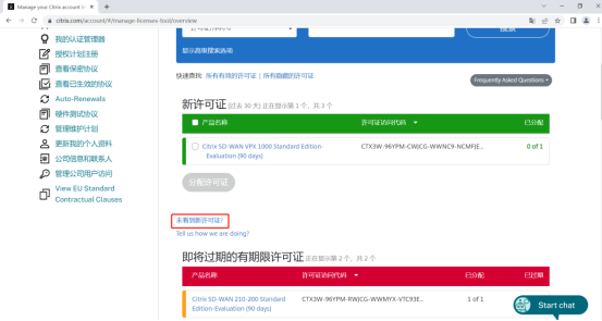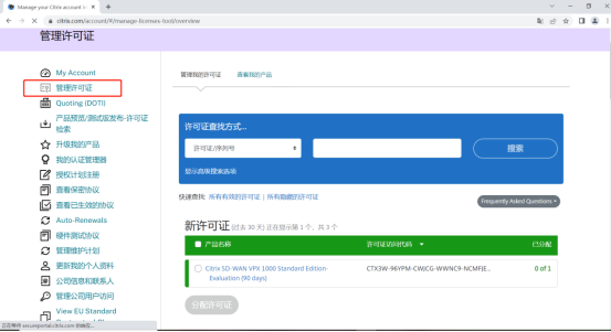 登录后点击管理 许可证 可看到该账号内所有有效许可以及快过期许可