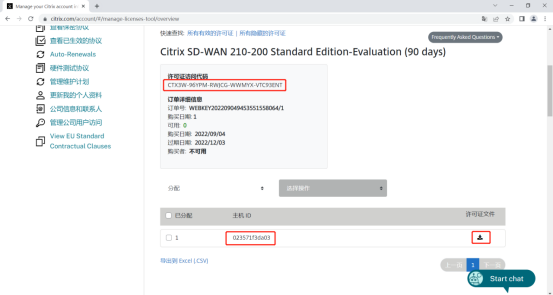 绑定许可证与主机ID即可下载授权文件,主机ID在设备license处获取