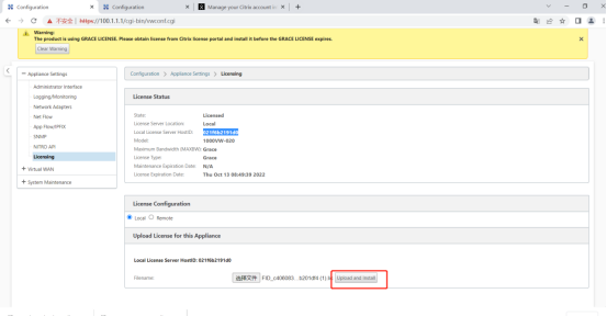 将下载好的授权保存至本地,登录设备将授权 文件上传 至SD-WAN设备即可