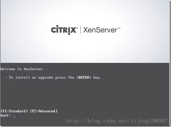 1、可以从网上下载XenServer安装文件,将其刻录成CD。将主安装 CD 插入主计算机的 DVD 驱动器中。选择从 DVD 驱动器引导。重启计算机,此时会显示初始引导消息和 Welcome to XenServer(欢迎使用 XenServer)界面,在这个界面下,有两个选项:按F1键表示进行标准安装;按F2键表示进行高级设置。