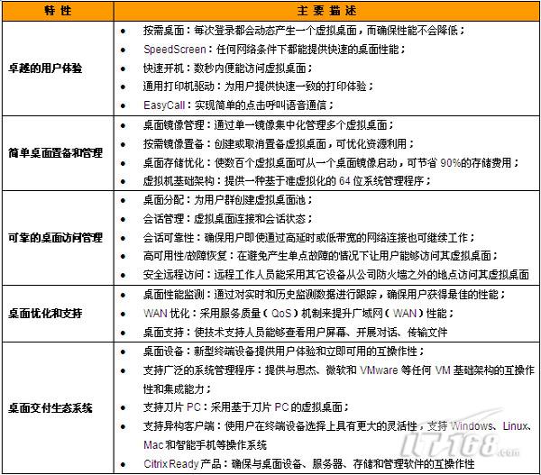 总结上述产品,XenApp是较全面的Windows应用程序虚拟化方案。XenServer是一款高效能的 服务器工作负载供应方案,能够在虚拟与实体 服务器之间取得最佳平衡,灵活配置资源。XenDesktop能够为身处任何地点的用户,提供快速稳定的桌面运作。